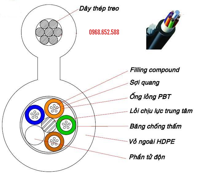 Cáp quang treo hình số 8 - 24 sợi,Cáp viễn thông, cáp thông tin PKL treo 24 sợi (24FO) Single mode(đơn mốt)