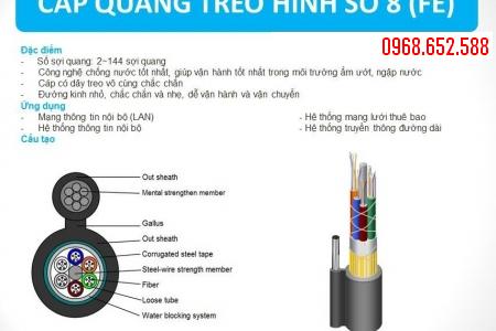 1.Cáp quang treo 12-24 sợi hình số 8: