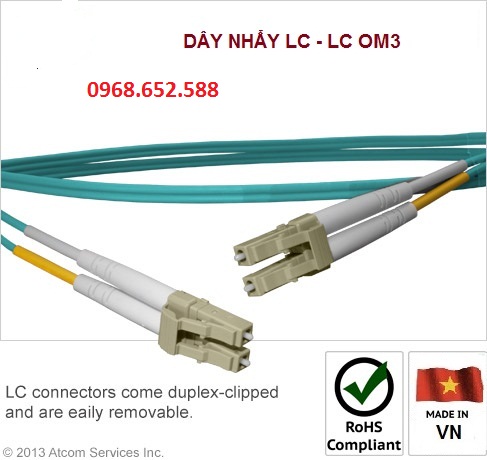 Dây nhảy quang LC-LC single-mode chiều dài 3 mét, 5 mét, 10 mét, 20 mét, 30 mét…dùng được cho các thiết bị chuyển đổi Quang-Điện, thiết bị mạng và các thiết bị quang viễn thông khác. là sản phẩm được sử dụng rât nhiều trong các ứng dụng viễn thông, sản phẩm được coi là thành công nhất so với các chủng loại dây nhảy hiện có hiện nay. Đặc điểm kỹ thuật của sản phẩm - Sản phẩm được sản xuất trong chu kỳ khép kín bao gồm thiết bị đo kiểm tra tiên tiến, toàn bộ dây truyền được nhập khẩu đồng bộ từ nhật